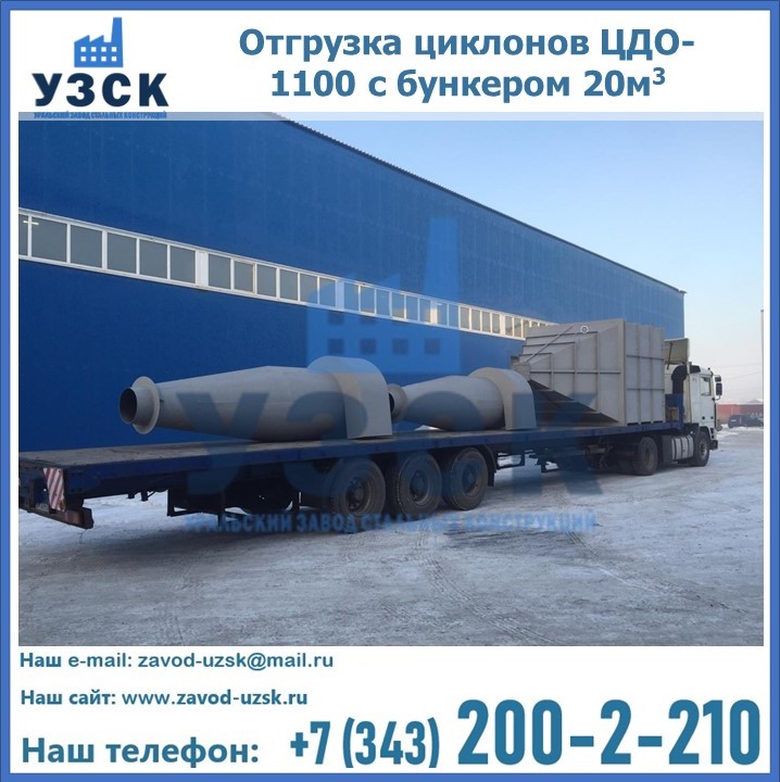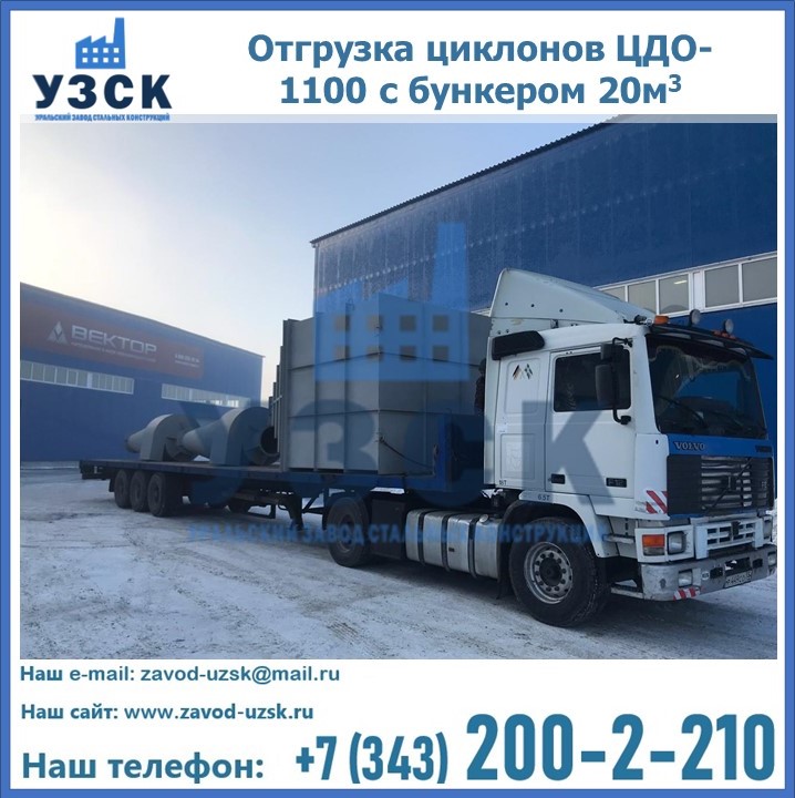 Циклоны ЦДО-1100 с бункером на 20 кубов были отгружены в декабре 2018 года в г. Новосибирск Волгодонск.