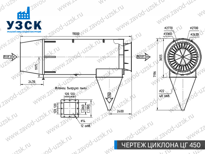 Монтаж циклона-искрогасителя ЦГ должен осуществляться непосредственно к горизонтальному вентиляционному каналу на входе в систему фильтрации и аспирации. Заказать изготовление по индивидуальному техзаданию или купить готовый циклон-искрогаситель ЦГ на заводе УЗСК в Волгодонске можно, оставив заявку прямо на сайте или позвонив по указанному телефону, уточнив все детали касательно продажи оборудования.