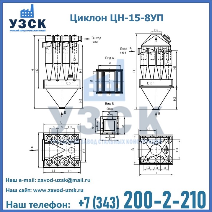 Завод «УЗСК» в Волгодонске предлагает большой выбор циклонов ЦН-15-500×8УП и прочих устройств, полностью укомплектованных и готовых к эксплуатации. Мы гарантируем соответствие оборудования всем требованиям ГОСТ и ТУ, износостойкость и высокую производительность предлагаемого оборудования. Уральский Завод Стальных Конструкций изготавливает и продает надежное, эффективное и производительное оборудование, имеющее длительную гарантию и большой эксплуатационный ресурс. Если требуется изготовить циклон нестандартных размеров, то такой вариант выполнения заказа тоже предусмотрен, так как предприятие имеет собственные производственные площади и надежных поставщиков. На все поставляемое или производимое оборудование имеются чертежи и прочая техническая документация. Заказать и купить циклоны или прочее оборудование высокого качества и по доступной цене можно через наш сайт или по указанному в разделе «Контакты» телефону.