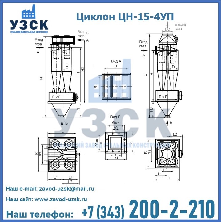 Завод «УЗСК» в Волгодонске предлагает большой выбор циклонов ЦН-15-800×4УП и прочих устройств, полностью укомплектованных и готовых к эксплуатации. Мы гарантируем соответствие оборудования всем требованиям ГОСТ и ТУ, износостойкость и высокую производительность предлагаемого оборудования. Уральский Завод Стальных Конструкций изготавливает и продает надежное, эффективное и производительное оборудование, имеющее длительную гарантию и большой эксплуатационный ресурс. Если требуется изготовить циклон нестандартных размеров, то такой вариант выполнения заказа тоже предусмотрен, так как предприятие имеет собственные производственные площади и надежных поставщиков. На все поставляемое или производимое оборудование имеются чертежи и прочая техническая документация. Заказать и купить циклоны или прочее оборудование высокого качества и по доступной цене можно через наш сайт или по указанному в разделе «Контакты» телефону.
