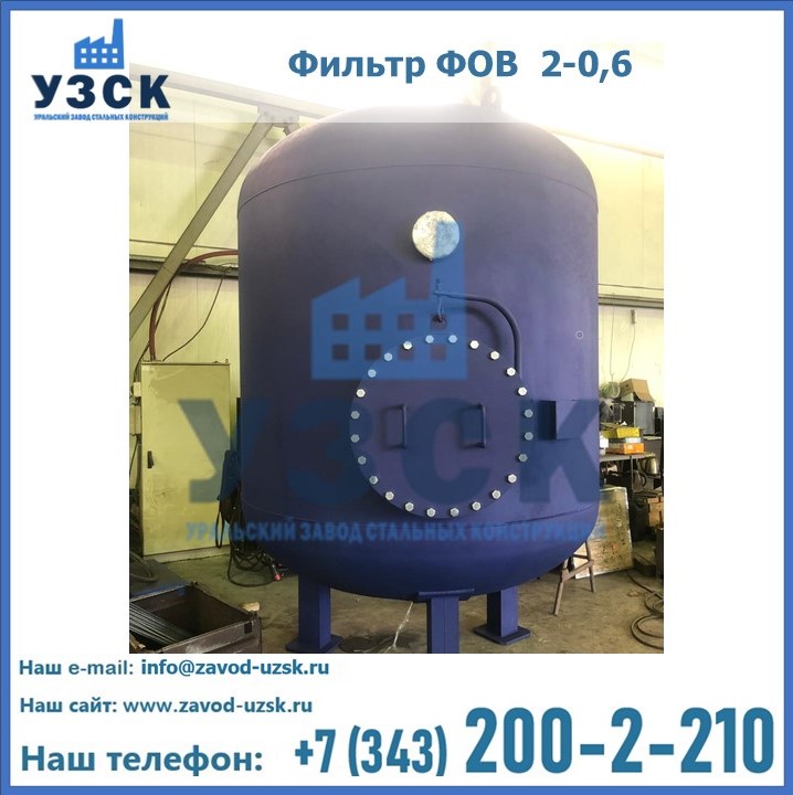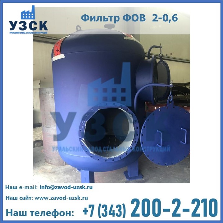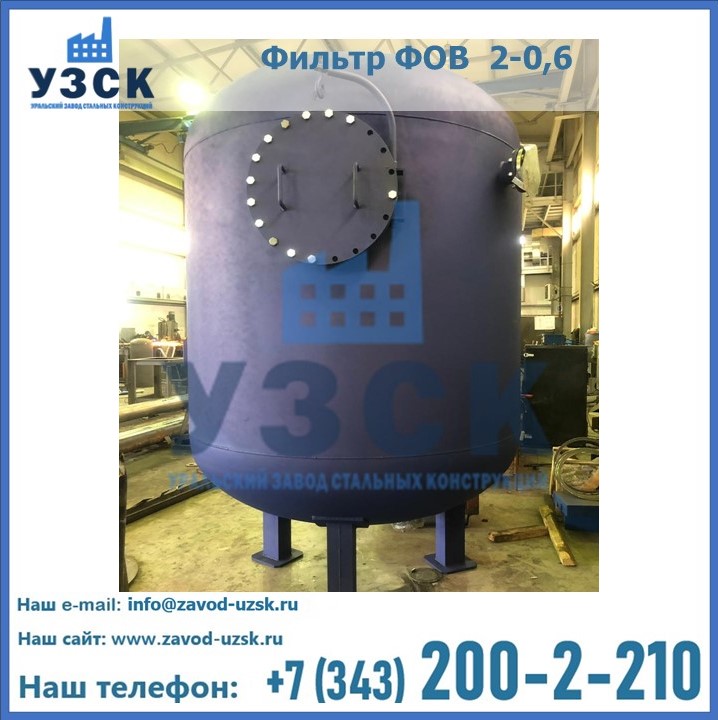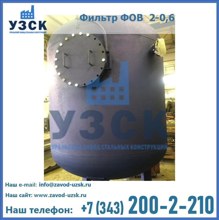Удаление взвешенных веществ различного уровня дисперсности из рабочих жидкостей эффективно проводит фильтр осветлительный типа ФОВ (скорый или механический) — вертикально-цилиндрической формы установка, разработанная для систем водоподготовки различного класса. Оборудование представляет собой однокамерный агрегат для очистки воды рекомендованный для применения на станциях очистки стоков, в коммунальных котельных, на ТЭЦ, в промышленных отопительных системах и пр. Заказать производство ФОВ фильтров предлагает наш Уральский завод стальных конструкций в Волгодонске. У нас можно купить фильтрационное оборудование различного класса и типа, в том числе фильтры ФОВ из нержавеющей стали.