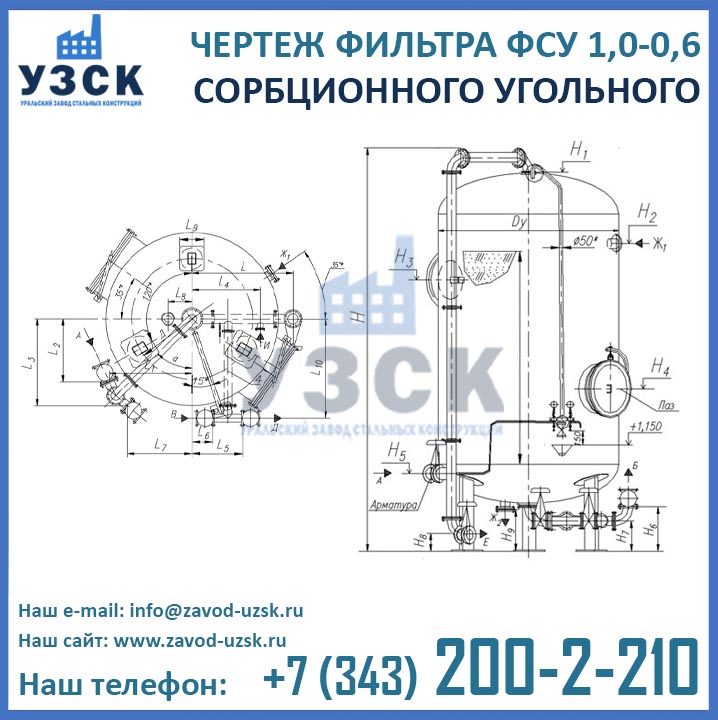 Наш завод (Уральский завод стальных конструкций) является производителем угольных фильтров, сам осуществляет изготовление и реализацию выпускаемой продукции. Приобретая фильтры ФСУ-1.0-0.6 в Волгодонске от производителя, Вы приобретаете оборудование без наценок всевозможных посредников, а также значительно экономите свое время. Фильтры ФСУ1.0-0.6 завода УЗСК – это гарантия качества, кратчайшие сроки изготовления и цена, которая Вам понравится.