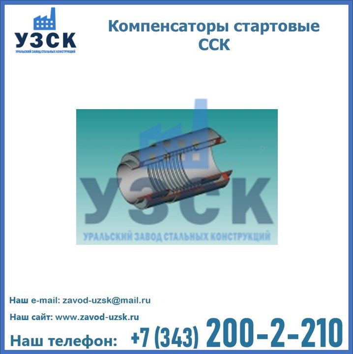 Стартовые компенсаторы, при прокладке прямолинейной системы труб, устанавливается через интервалы, установленные в проекте. В готовую траншею по всей протяженности системы, кроме участков, оборудованных ССК, засыпается грунт. В процессе первоначального нагревочного пуска трубной системы происходит удлинение труб, в результате этого сильфоны стартовых компенсаторов сжимаются. Внешняя стальная оболочка компенсаторов, после нагревания, приваривается. Трубы таким образом фиксируются в грунте, а последующие температурные перепады трансформируются в допустимые стабильные напряжения. Уральский Завод Стальных Конструкций предлагает готовые изделия, а также оборудование под заказ. Наш завод располагает всеми необходимыми возможностями для производства нестандартных компенсаторов ССК. Завод «УЗСК» предлагает большой выбор качественных и надежных сильфонных стартовых компенсаторов, полностью укомплектованных и готовых к эксплуатации. Мы гарантируем соответствие нашей продукции всем требованиям ГОСТ и ТУ, износостойкость и высокую производительность. Наше предприятие поставляет и производит оборудование, имеющее длительную гарантию и большой эксплуатационный ресурс. Если вы хотите заказать сильфонные компенсационные устройства ССК или другое оборудование с доставкой, наши специалисты помогут рассчитать стоимость транспортных расходов и организуют перевозку товара. Вы можете оформить заказ на продукцию на нашем сайте в Волгодонске, для этого достаточно заполнить форму обратной связи.