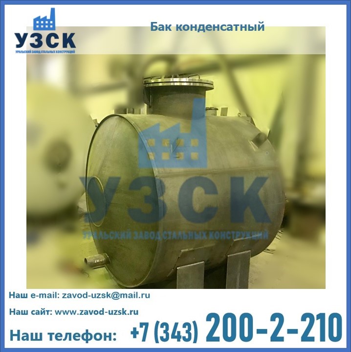 Многие заказчики стараются конденсатные баки купить по выгодной цене в компании «УЗСК» в Волгодонске. Причин несколько. Производитель поставляет емкости с полным комплектом лестниц, площадок обслуживания. Бак после гидравлических испытаний покрывают специальной внутренней и наружной краской, накладывают теплоизоляцию или наваривают крепеж для навески минматов. Условия теплоизоляции согласуются с заказчиком.