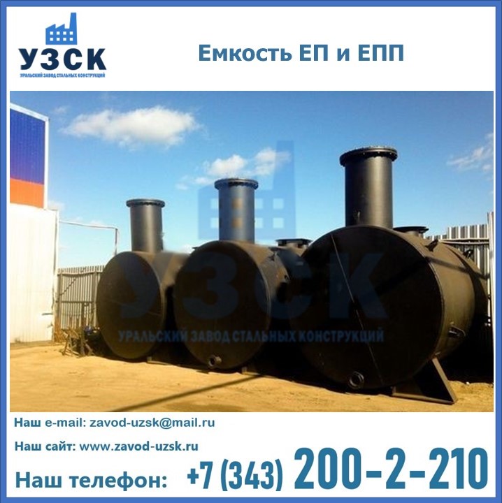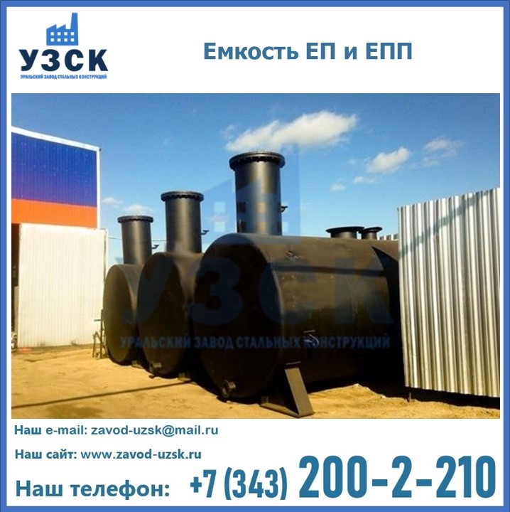 Дренажная емкость, расположенная в незамерзающем горизонте, представляет горизонтальный цилиндр с двумя днищами. Наличие подобного оборудования в системах перекачки, сбора и хранения нефтепродуктов обязательно. Сливы при опорожнении трубопроводов, остатки из емкостей, аппаратов, после пропаривания и промывания водой собираются для очистки и переработки. Емкость подземная ЕП, и подземная с подогревом ЕПП, аккумулируют жидкие отходы, чтобы нефтепродукты не впитались в землю, не проникли в водные горизонты. Необходимо предусмотреть откачку накопителя для дальнейшей переработки или утилизации.