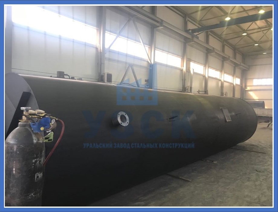 Для создания емкости в основном используются сварочные работы. Установленные на заводе линии сварки в автоматическом режиме, без пережога, способом двусторонней сварки готовят развертку цилиндра. Метод называется рулонированием. Позже с помощью тросов заводят материал на ребра жесткости, создавая цилиндр. Сварка стыка ведется зубчатым швом для прочности. Цилиндр устанавливается вертикально и к нему на стенде точно крепятся торцевые крышки.