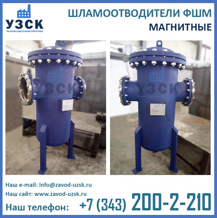 Являясь непосредственным изготовителем фильтров магнитных ФШМ, Уральский завод стальных конструкций предлагает самые низкие цены на шламоотделители ФШМ Ду250 в Волгодонске. Производство магнитных шламоотводителей осуществляется в самые короткие сроки специалистами сварочного производства НАКС по аттестованной технологии сварки при помощи сварочного оборудования, аттестованного Национальным агентством контроля сварки.